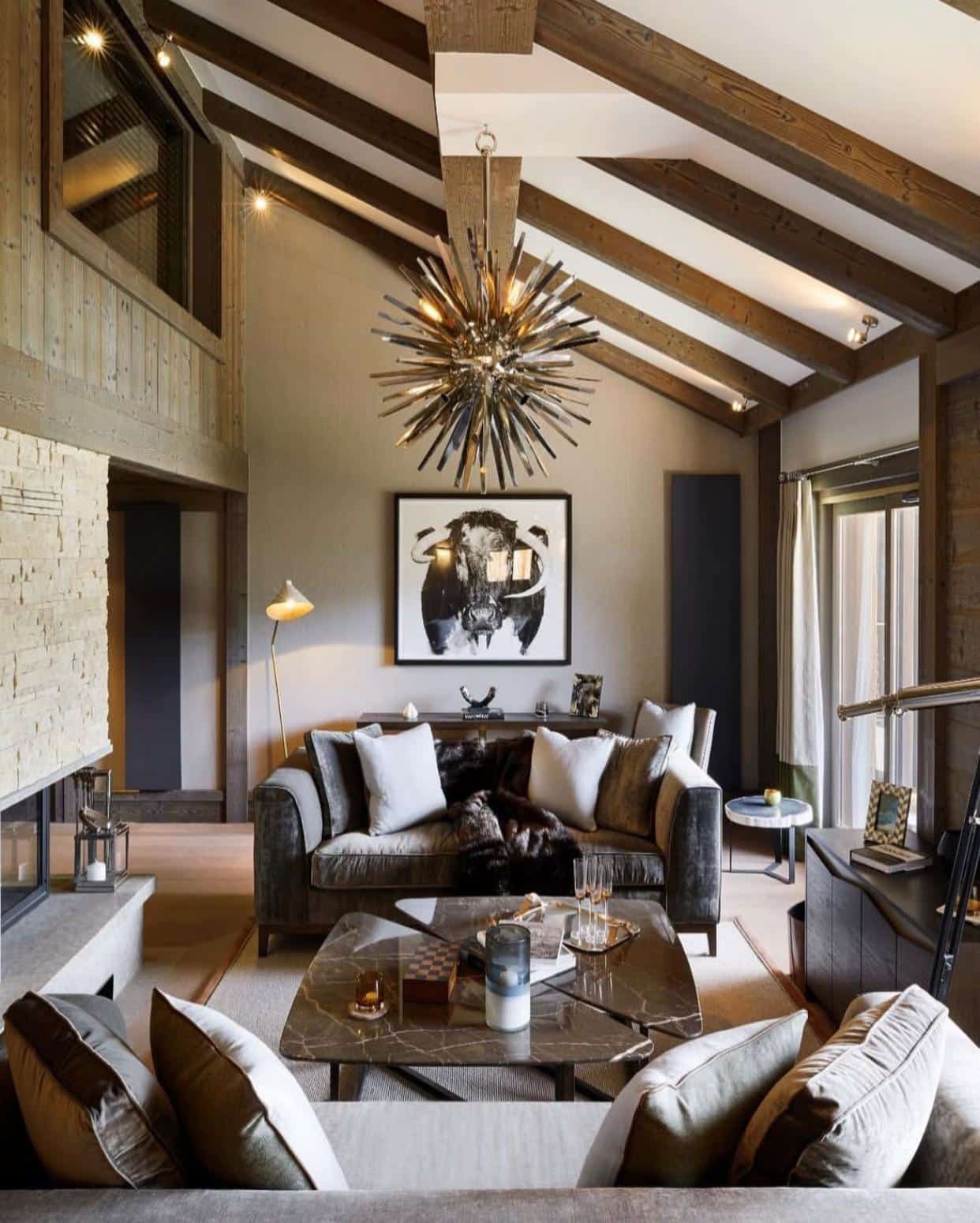 — grandes baies vitrées ouvertes sur les montagnes,