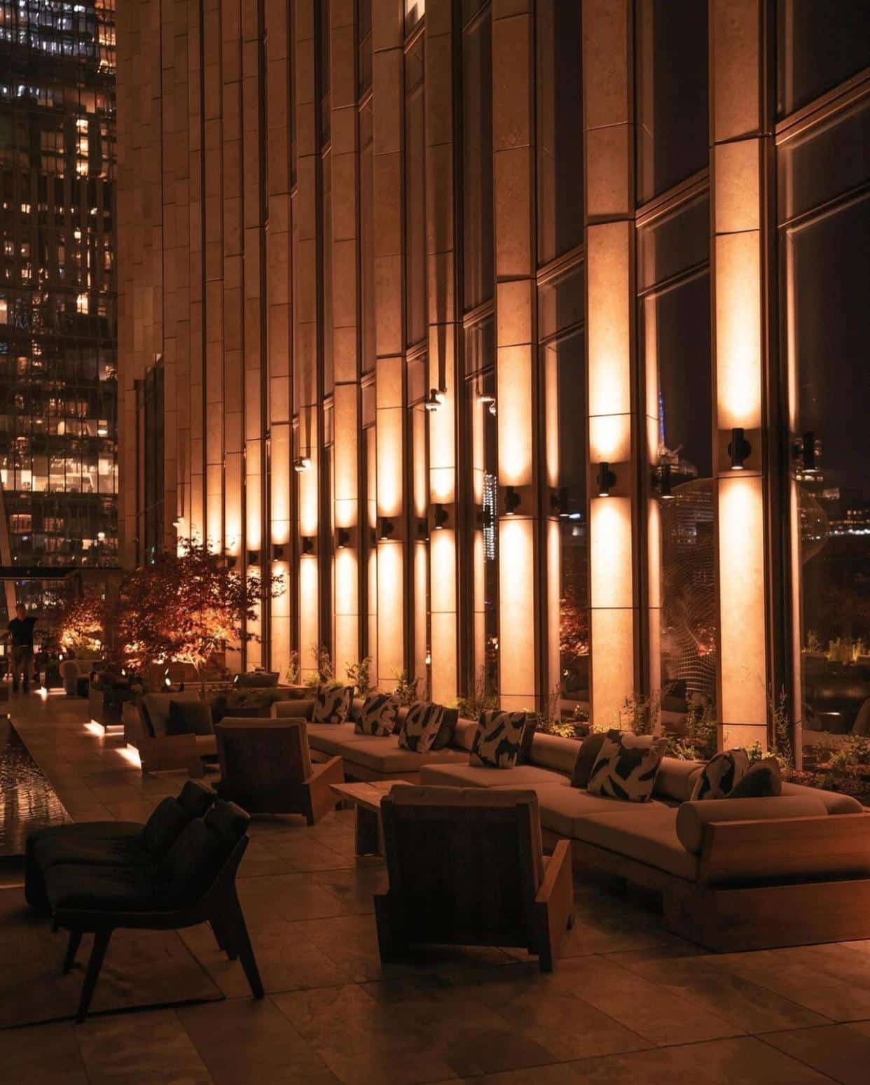 Aman New York s’inscrit dans une démarche d’hospitalité responsable : optimisation énergétique, limitation du plastique, choix de matériaux durables et collaborations avec des artisans et producteurs locaux.