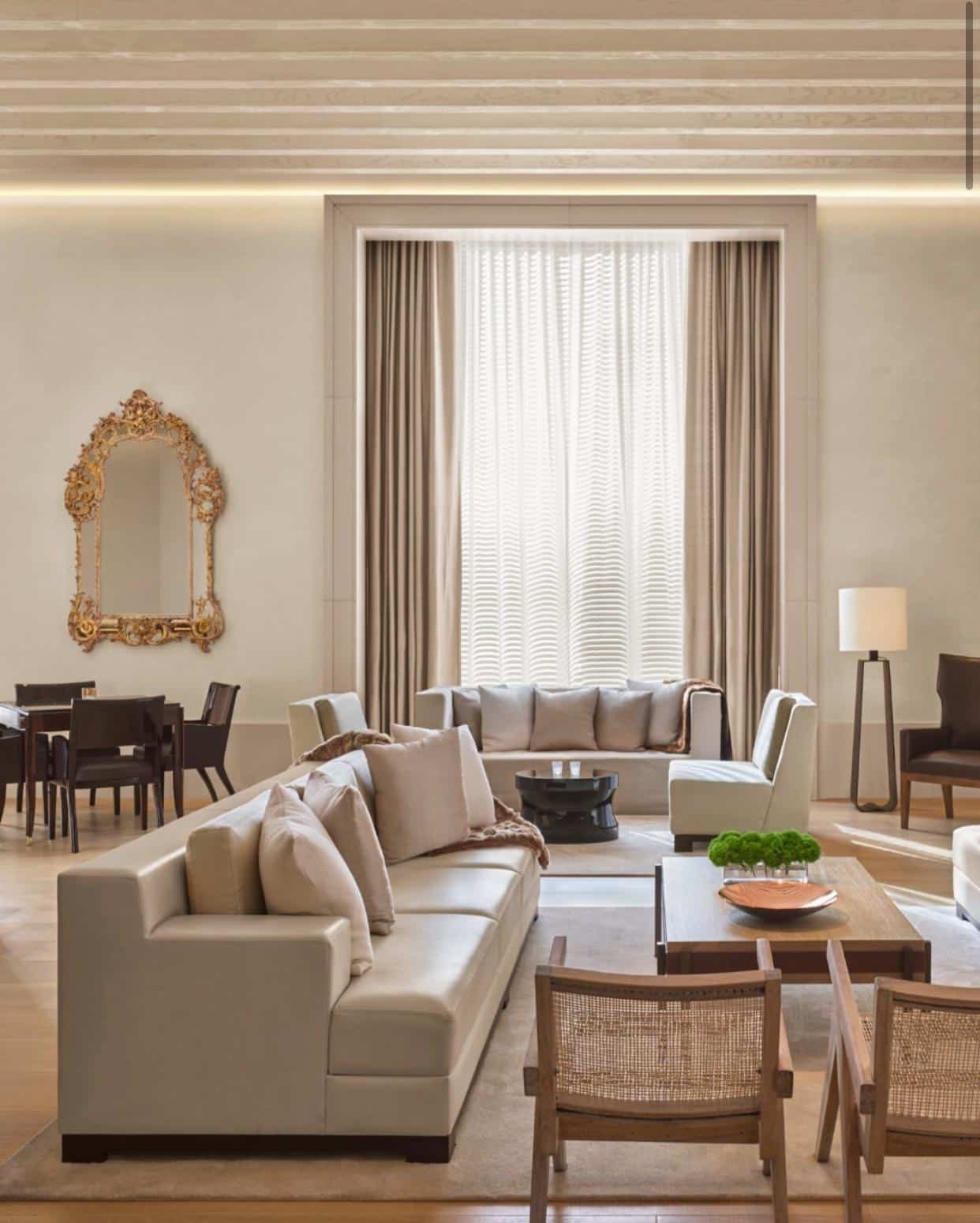 Les 83 suites, parmi les plus spacieuses de Manhattan, marient sobriété et raffinement. Chaque espace, doté d’une cheminée, invite à la détente et à la contemplation. Les matériaux naturels et les lignes apaisantes reflètent une approche du luxe où la discrétion prime sur l’apparat.