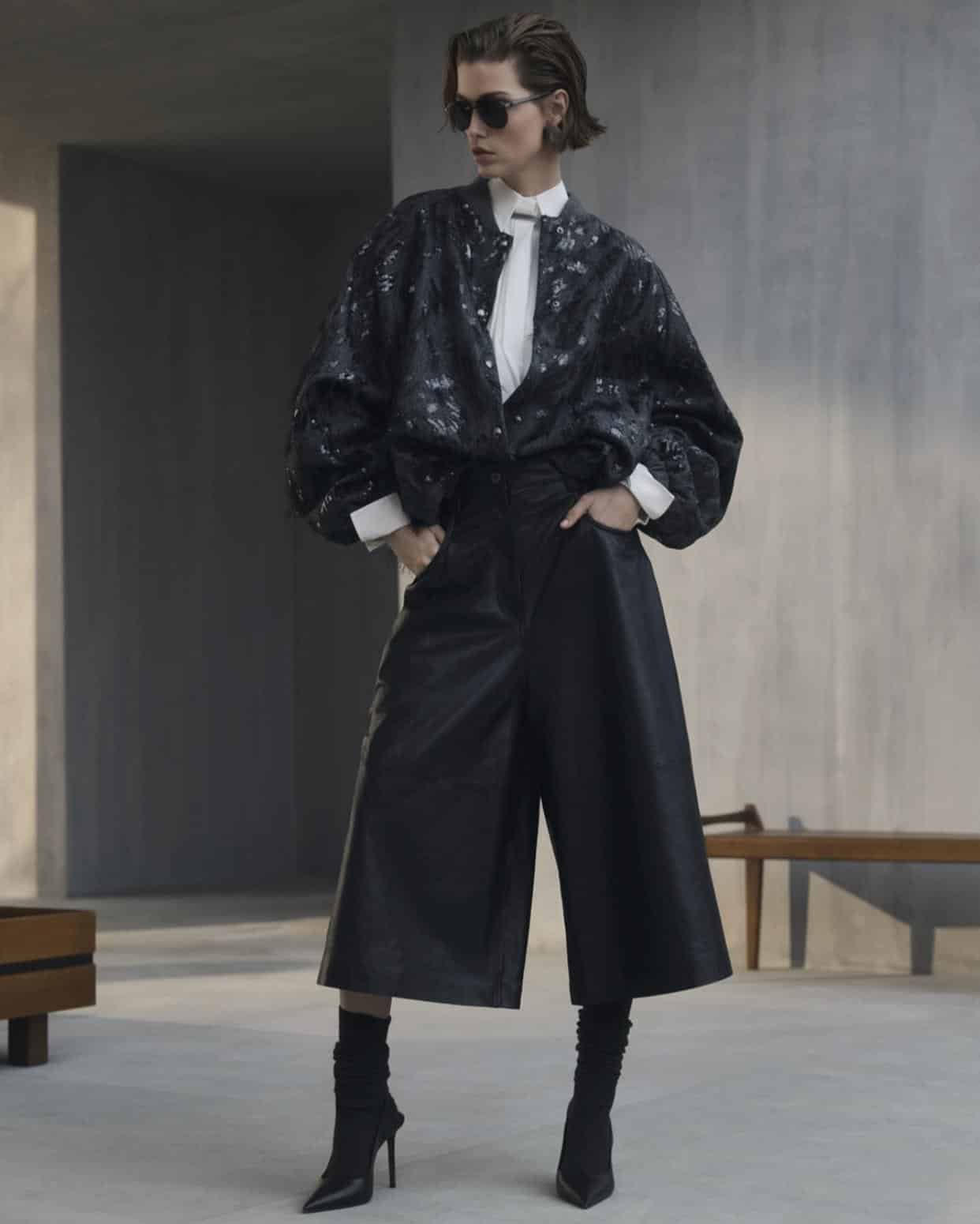 elle s’appuie sur la coupe, la matière, la densité textile et la cohérence des volumes.